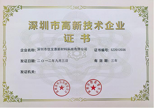 優(yōu)寶新材是深圳市新材料行業(yè)協會常務理事單位、中國中小企業(yè)創(chuàng)新100強、深圳自主創(chuàng)新百強中小企業(yè)等一系列珍貴榮譽。優(yōu)寶新材以優(yōu)質的產品,服務全球客戶1000余家,其中500強企業(yè)30余家。