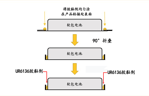 應(yīng)用場景:UR 6136 PUR膠粘劑主要用于聚合物鋰電池的側(cè)邊折邊粘接,確保電池封邊穩(wěn)定,防止電芯變形或短路,從而提升電池的安全性和性能。